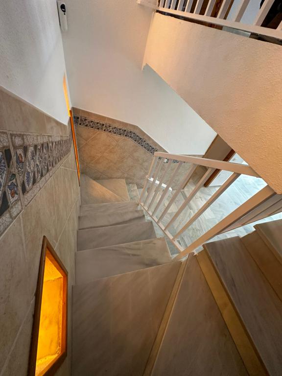 El piso tiene 160 m2 construidos con tres habitaciones , dos habitaciones en planta arriba y una en planta baja con armarios, empotrados, 2 baños 1 en suite, cocina y (2) terrazas amplias