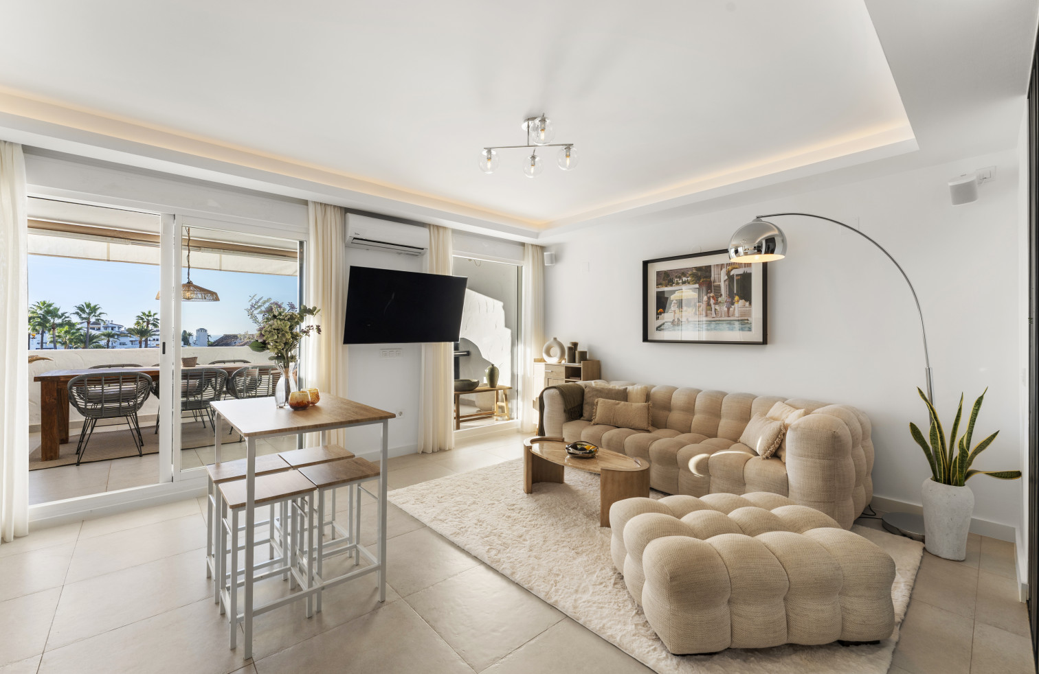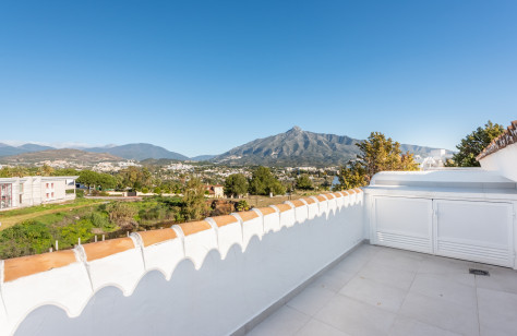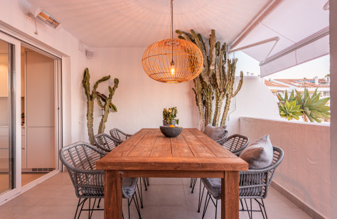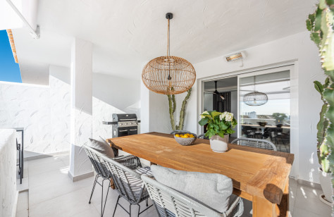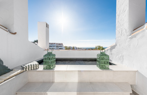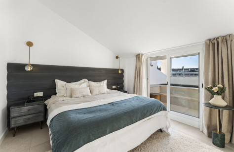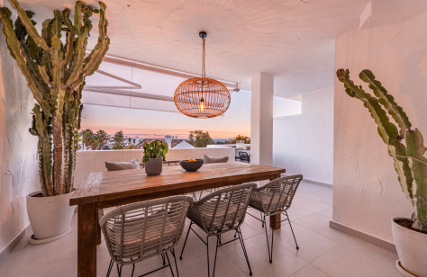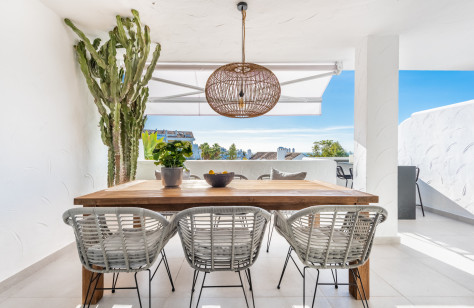 Ubicado en la prestigiosa urbanización El Dorado, en Nueva Andalucía, este ático dúplex ofrece una combinación ideal de lujo, confort y diseño escandinavo contemporáneo. Distribuido en dos plantas, cuenta con tres dormitorios y tres baños.
