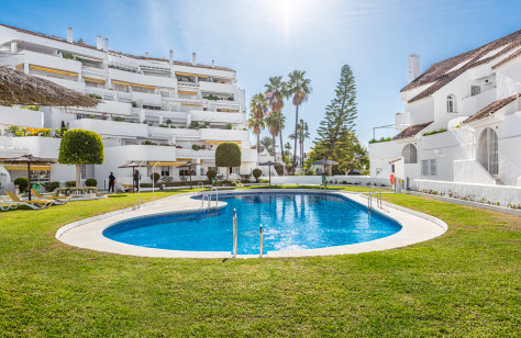 Tres terrazas,jardin y piscina comunitaria ,dos plazas garaje subterraneo y urbanizacion cerrada.Completamente amueblado,con licencia de primera ocupacion y turistica .Proximo a Centro Plaza ,la playa y Puerto Banus .